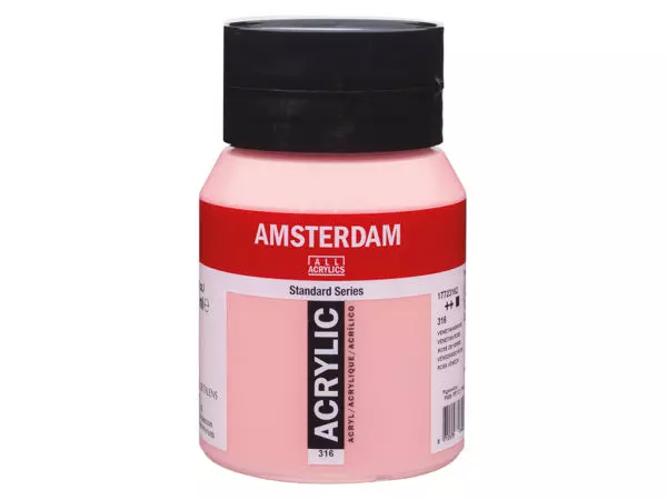 Amsterdam acryl standard series er en moderne, rimelig farge av god kvalitet. Standard series er utviklet spesielt for moderne kunstnere, amatører og storforbrukere av maling. Fargen blir også benyttet mye til undervisning. Serien har et stort fargeutvalg på 80 farger hvorav mange utradisjonelle, moderne farger som appellerer til yngre malere, designere og nybegynnere. Man behøver ikke å kunne male for å få til et spennende bilde. Mange vil bare male enkle mønstre for å matche hjemme interiøret eller lage fargesprakende non figurative bilder. Den vannbaserte fargen tørker raskt. Pensler og utstyr rengjøres med vann før malingen er tørr. Tørket akrylmaling er vannfast. Alle farger kan selvfølgelig blandes innbyrdes. De kan også tynnes ut med vann eller tilsettes medier. Malingen kan benyttes på de fleste fettfrie, absorberende underlag. Er alkaliebestandig, og derfor egnet til veggmalerier utendørs. Må ikke brukes ved temperaturer under +10°C.