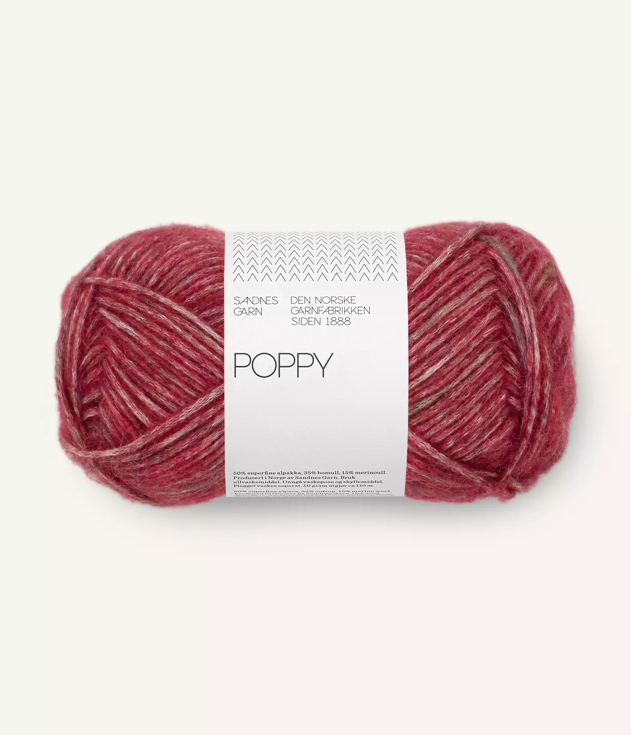 POPPY består av alpakkafiber som sammen med ull blir blåst inn i en bomullsstrømpe. Dette gir et mykt, lett og luftig garn.